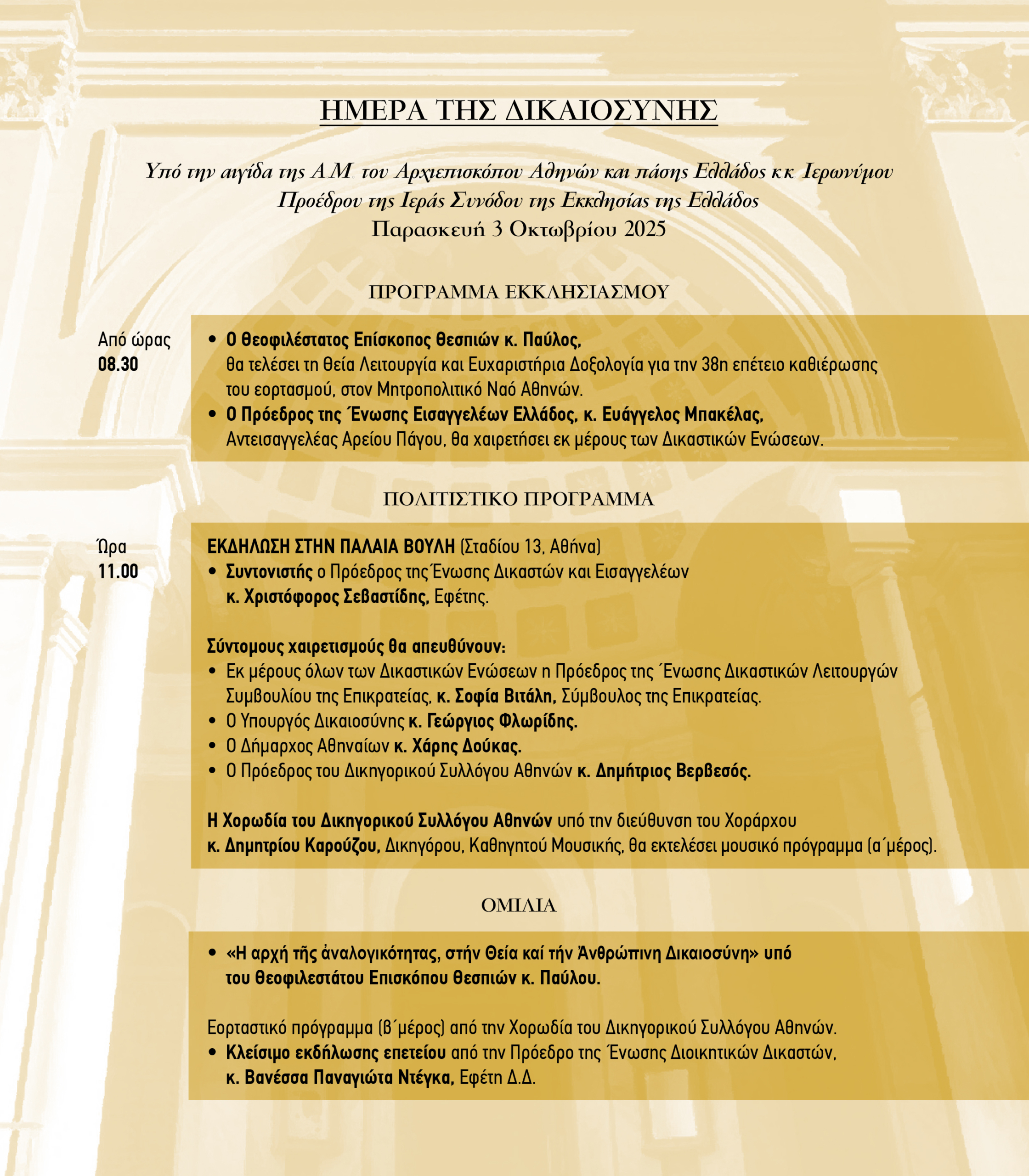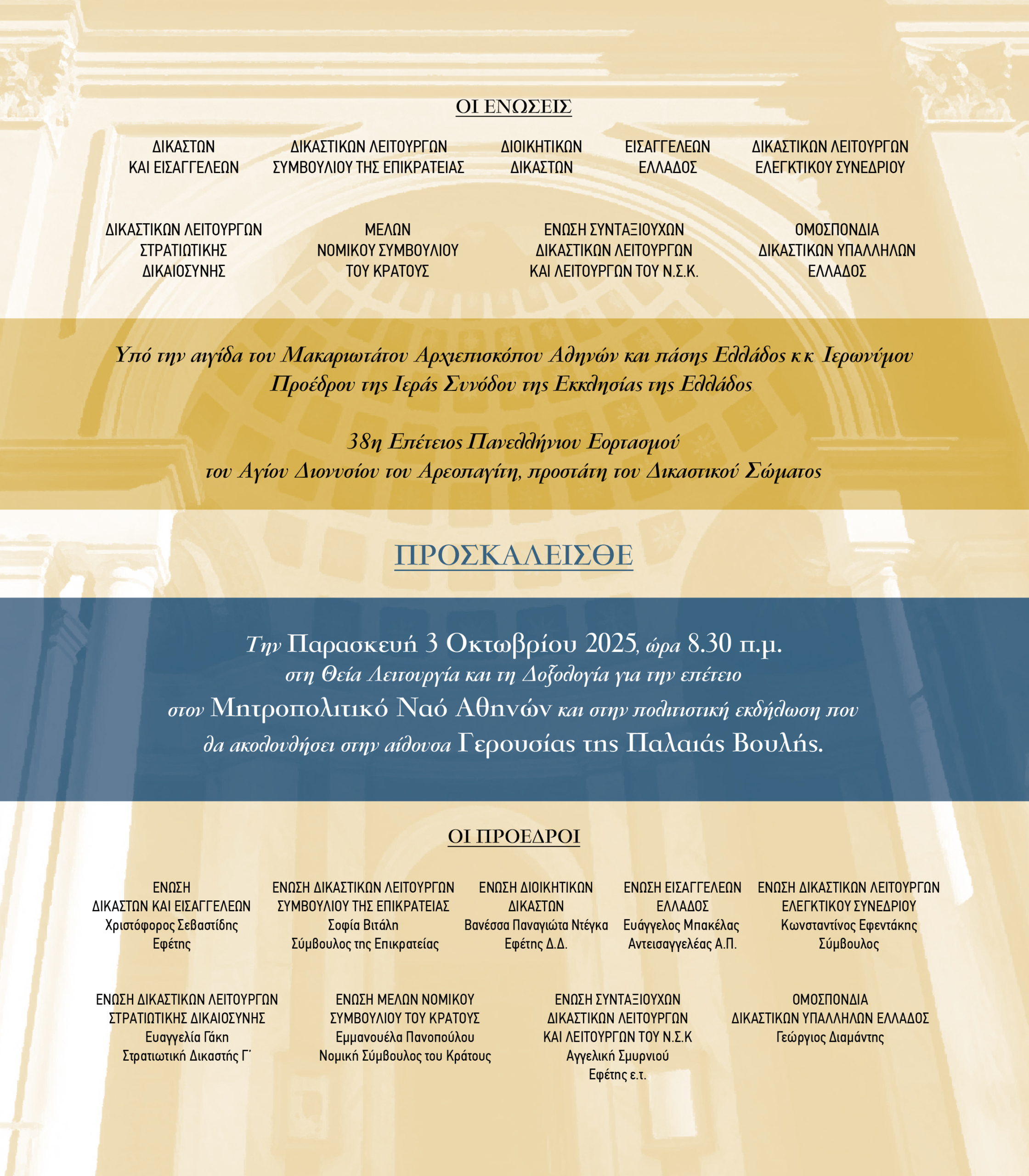 ΠΡΟΣΚΛΗΣΗ ΓΙΑ ΕΟΡΤΗ ΑΓΙΟΥ ΔΙΟΝΥΣΙΟΥ ΤΟΥ ΑΡΕΟΠΑΓΙΤΗ 3 ΟΚΤΩΒΡΙΟΥ 2025